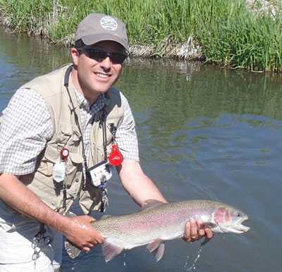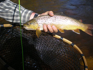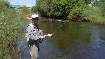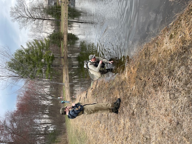 Harry fishing the Deerfield River with Tom Harrison, Harrison Brothers Anglers